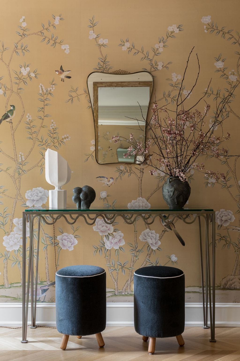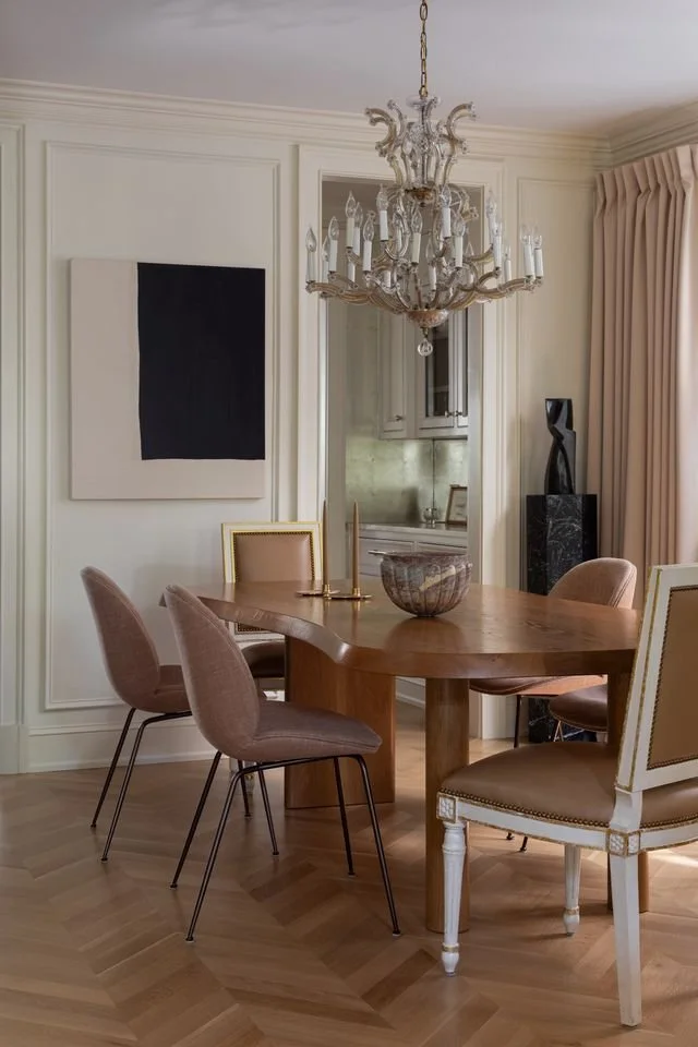 The home was reimagined in phases, each one responsive to a growing family’s evolving needs — new floors, reconfigured rooms, lighting reconsidered. Spaces were repurposed as the years and children accumulated: a Zoom room, a theatre room. A room that had once been underused became essential, and what was essential was made beautiful. Years in, white oak chevron floors were laid, reinventing the space once again.
