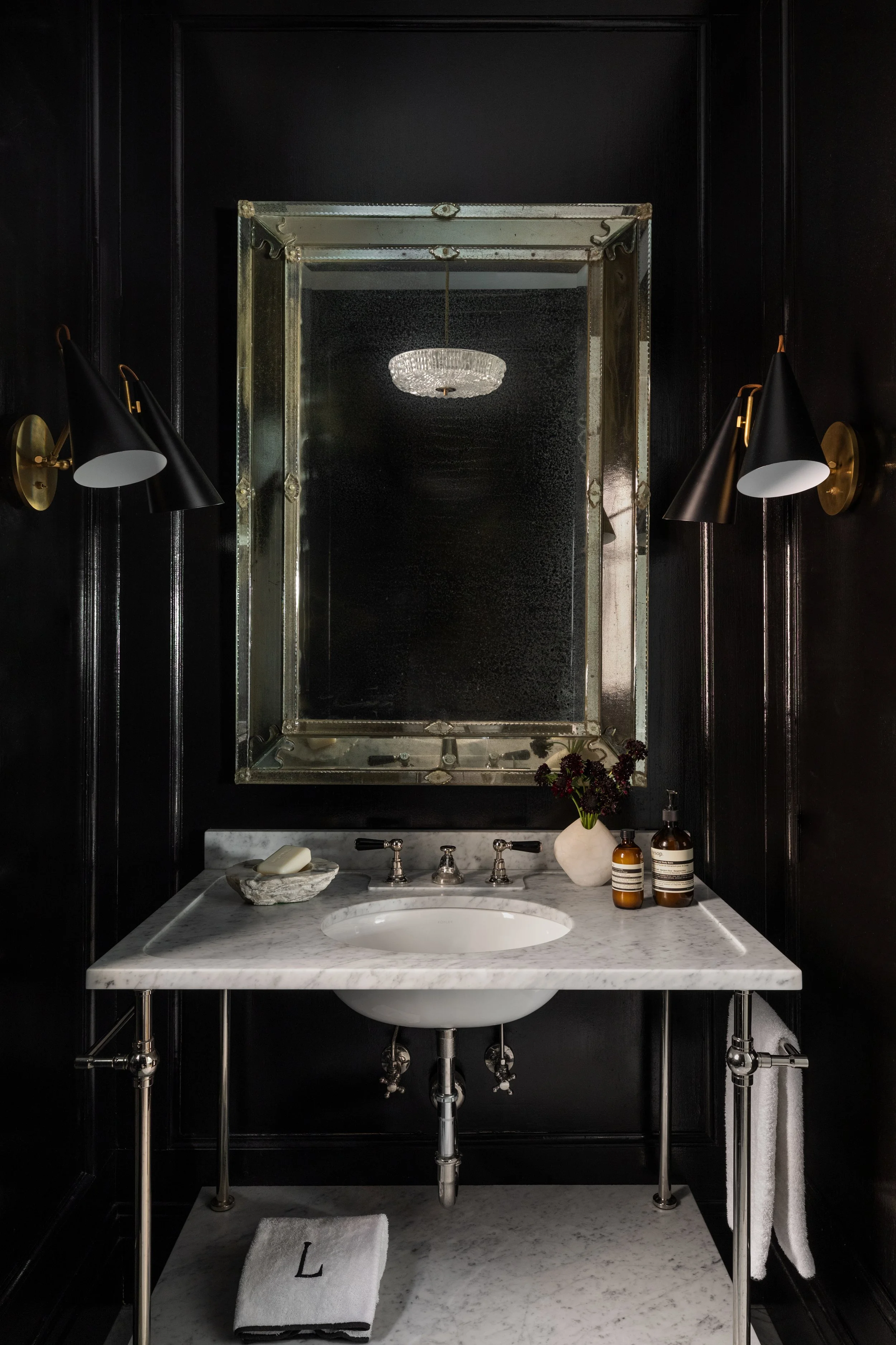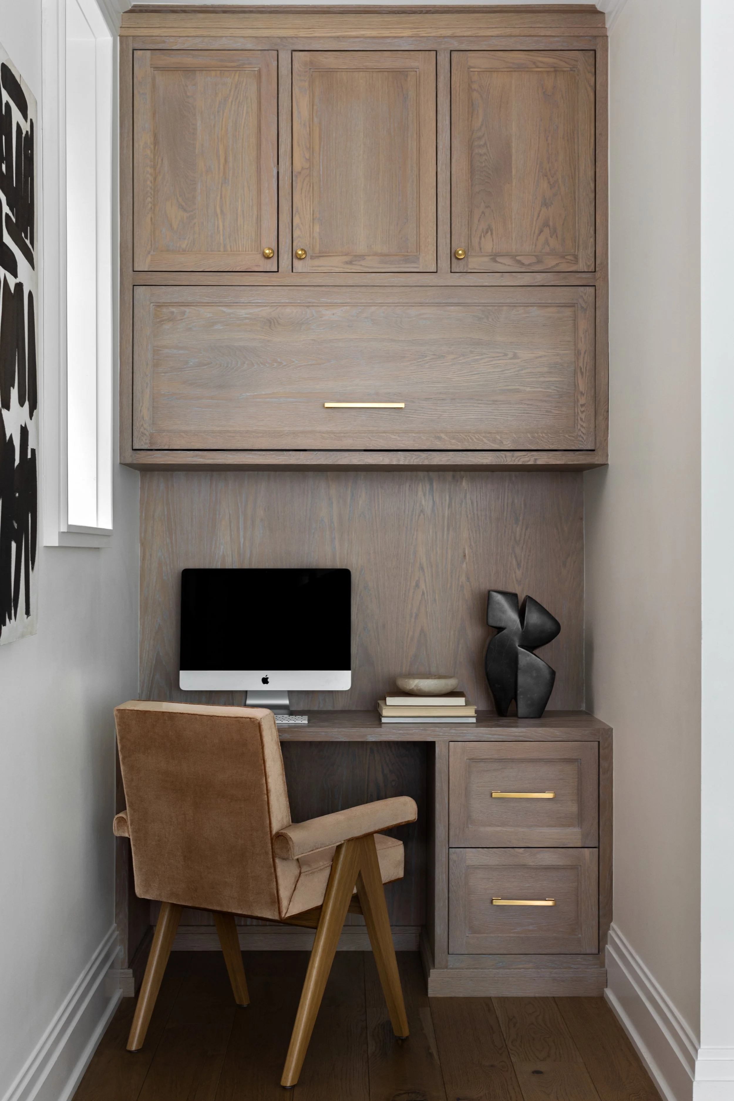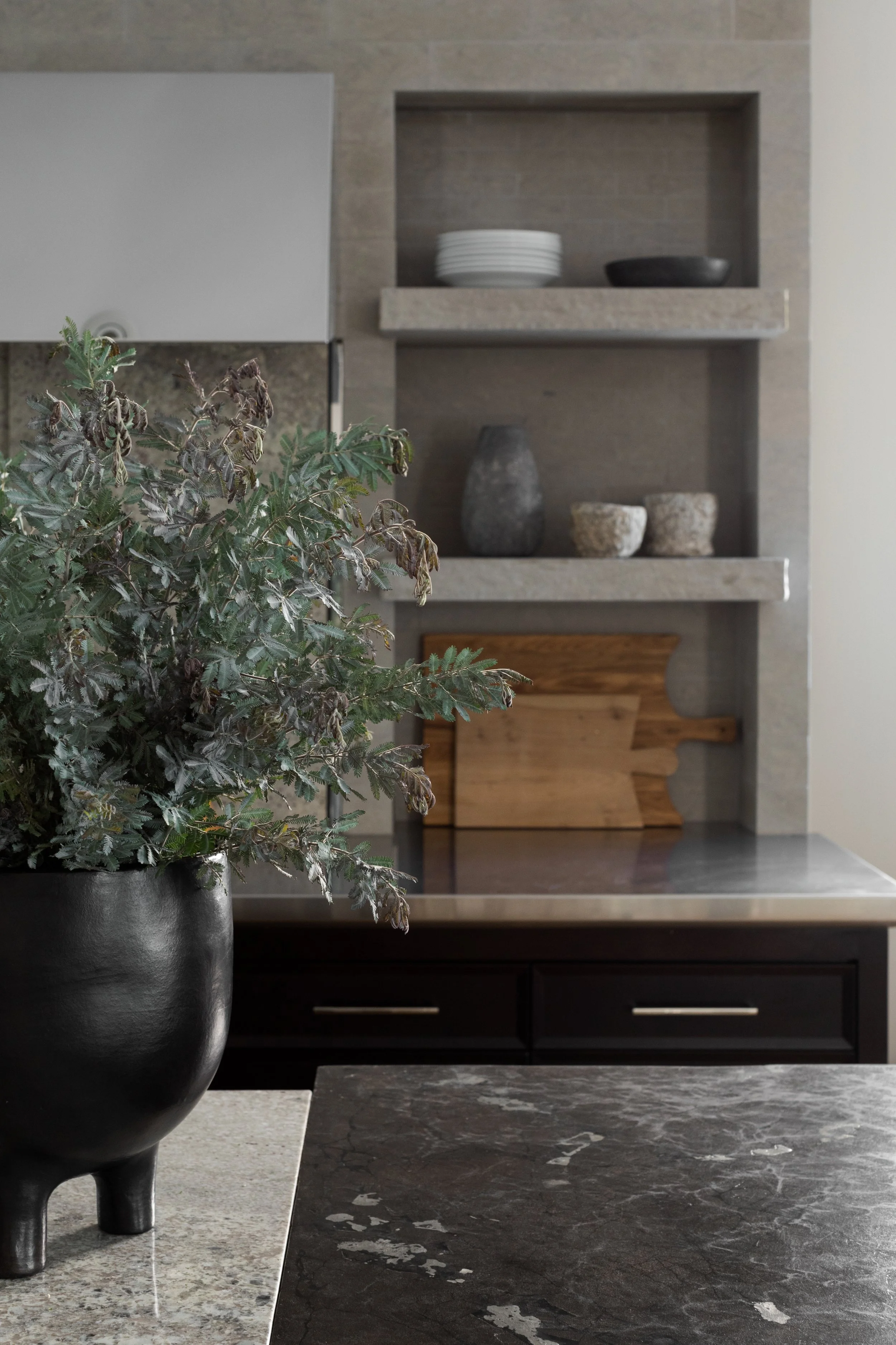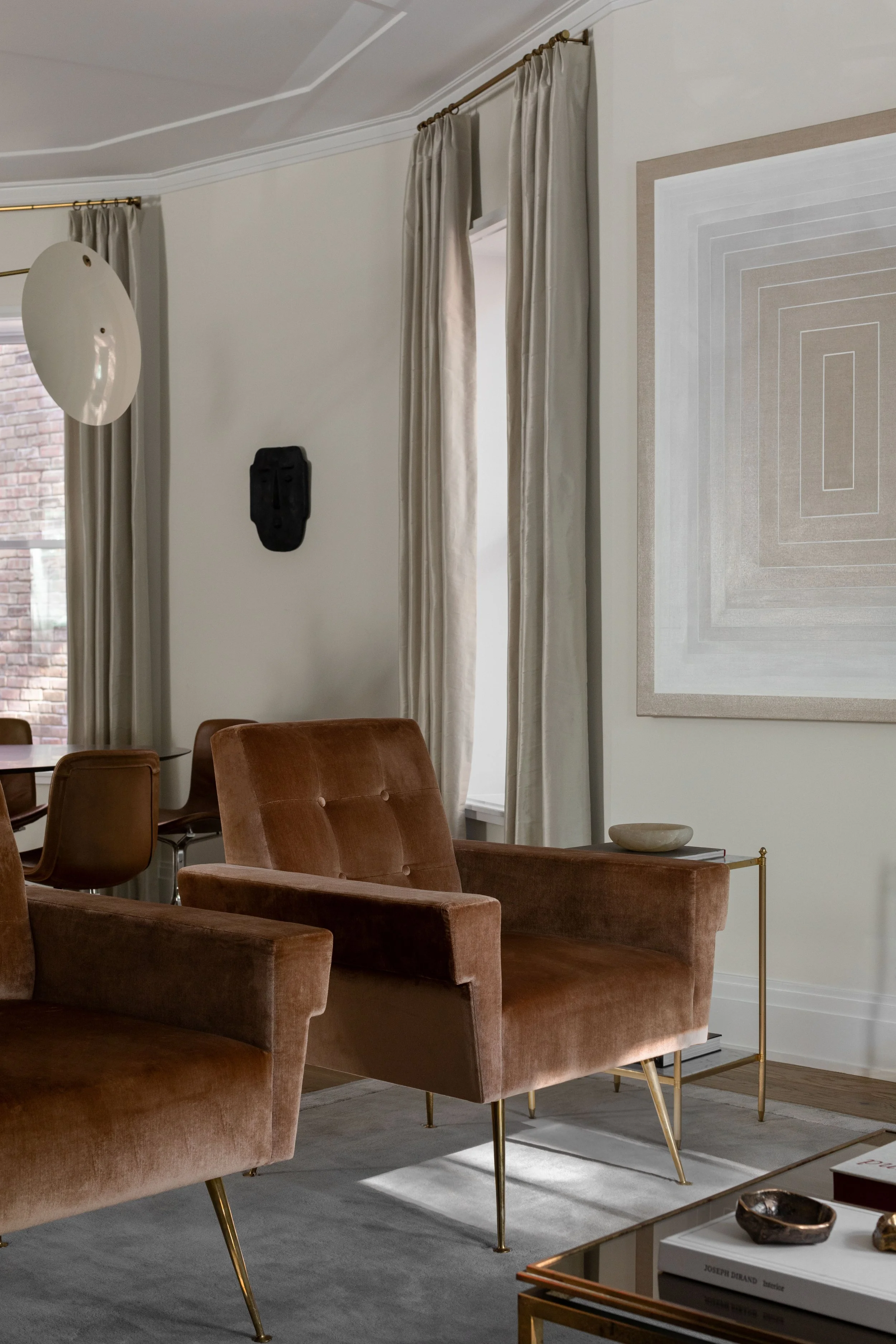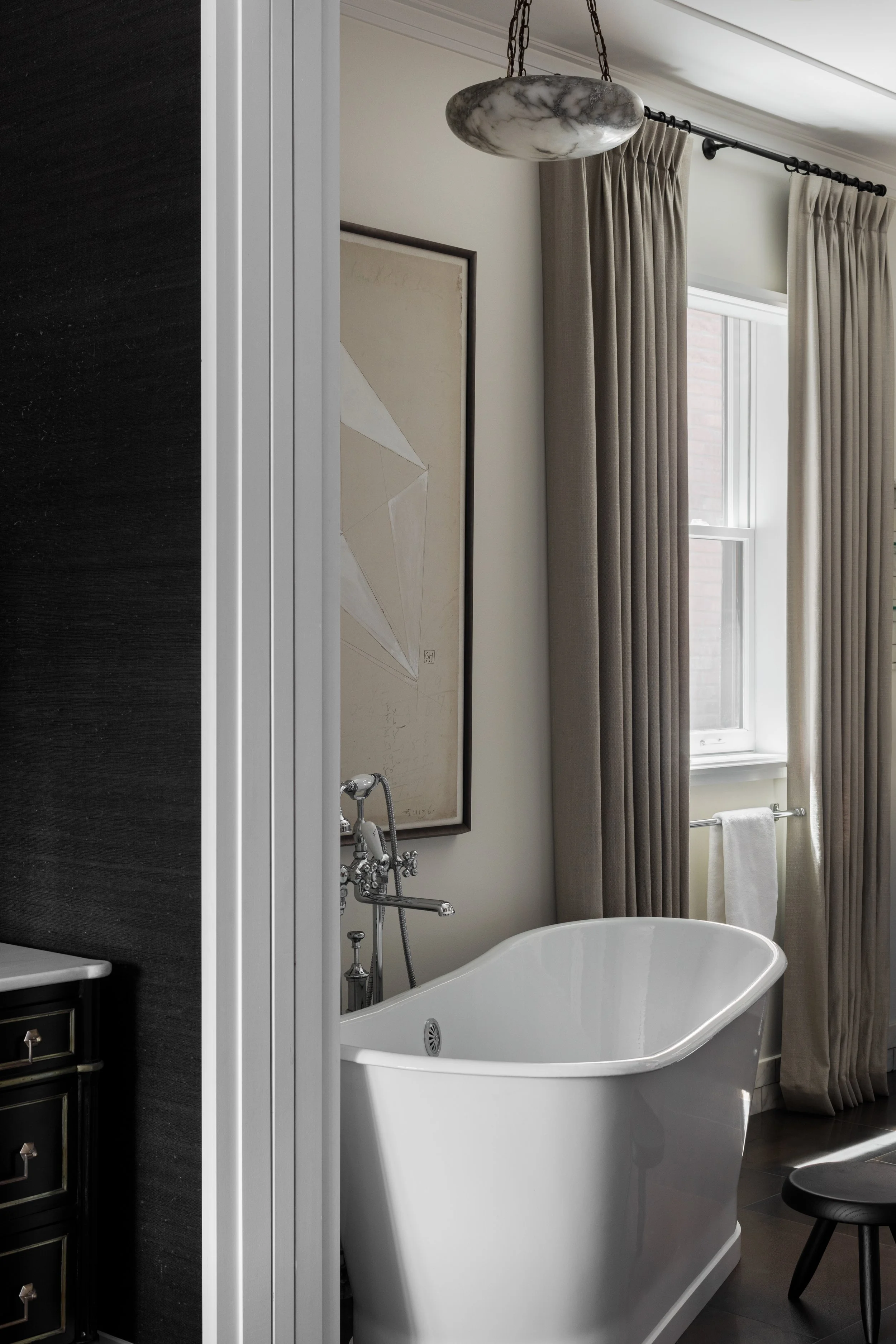The hasty renovation of this 1930s greystone turned out to be a blessing in disguise. When our clients bought the house, it had been stripped of its period details but given a contemporary vocabulary that invited us to do something inventive. With structural work and systems already updated, we started on a targeted intervention: reinstating key historic details like millwork and stone mantles, while layering in contemporary finishes and furnishings that gave the house the considered, lived-in quality it had been missing.